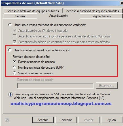 La configuramos en el mismo sitio que antes poniendo usar formularios basados en autenticación.